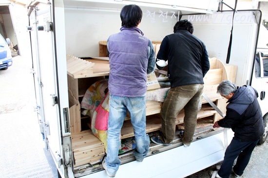 목재가 상하지 않도록 조심조심...