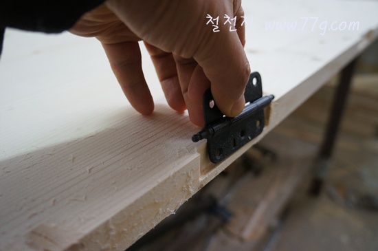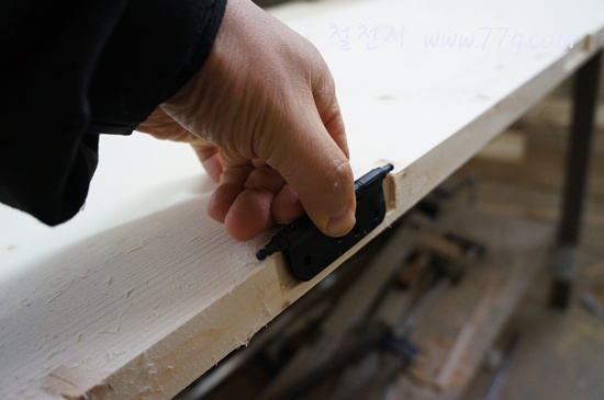 경첩홈 부분을 따내려고요.