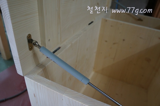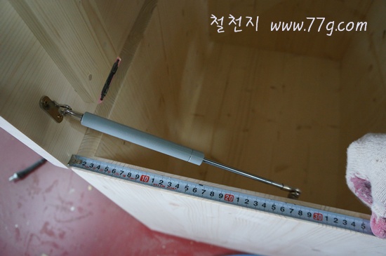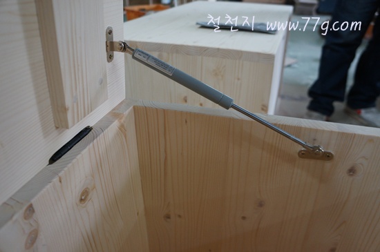 수납 침대 입니다. 문을 위로 올려야 해서 이렇게 쇼바를 달았어요.
