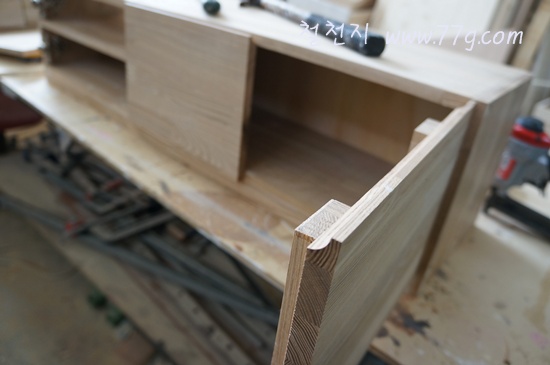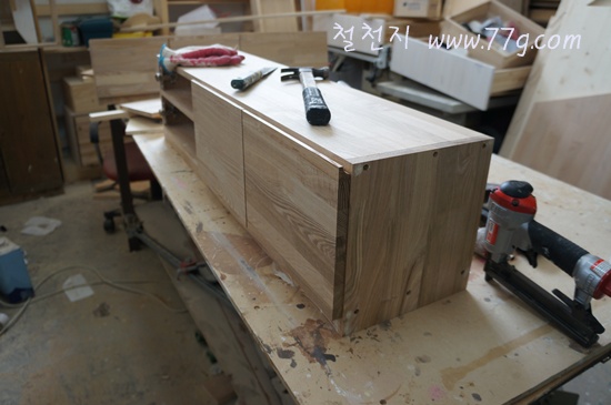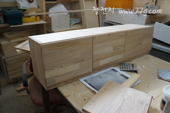 어제부터 만들던 물푸레 수납장 입니다.