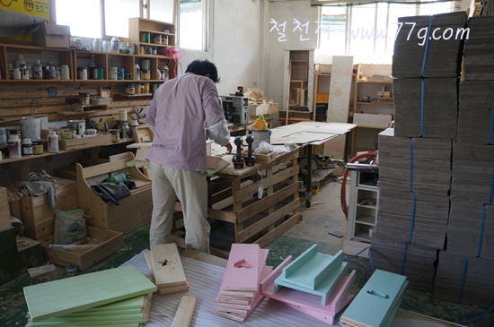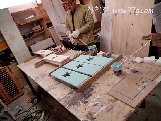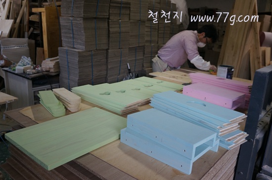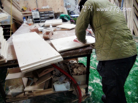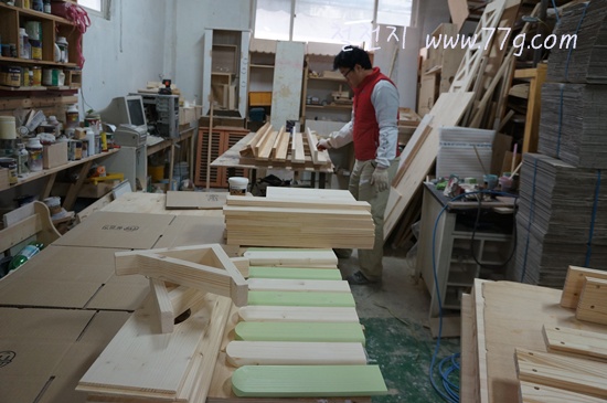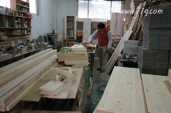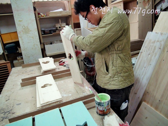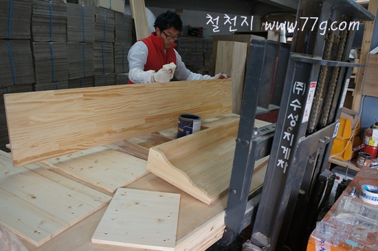 영주임은 침대를 마무리 하고 있습니다. 오늘 출고 했거든요.