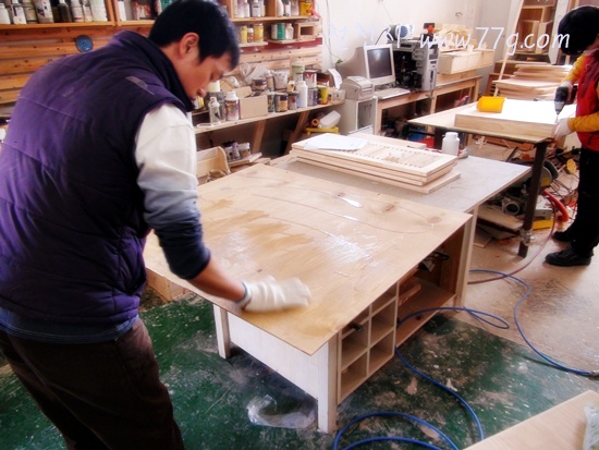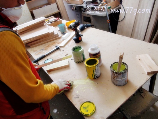 목재에 바를 페인트를 조색하고 있는 이대리님 -ㅁ-