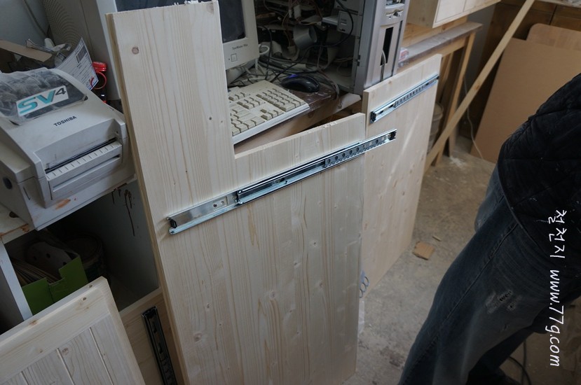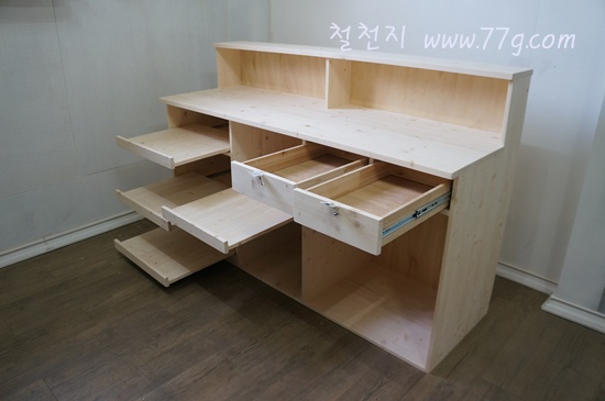 먼저 옆면 기둥들을 만들었습니다.ㄴ자 모양으로 따낸후 서랍 레일을 고정했습니다.