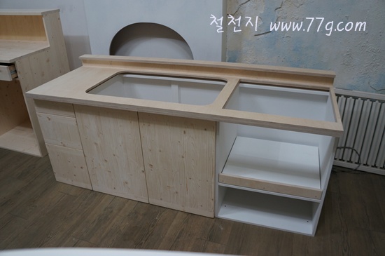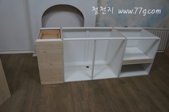 대략 틀이 잡아 집니다. 서랍과 문짝만 달면 되겠네요.