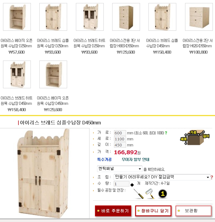 아이리스 수납장은 뒷판 부분을 변경 요청하셔서 의자에 들어가는 곡선을