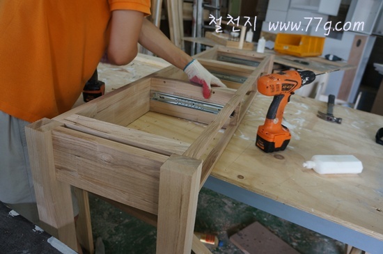서랍에 앞판을 부착후 생딩중입니다.