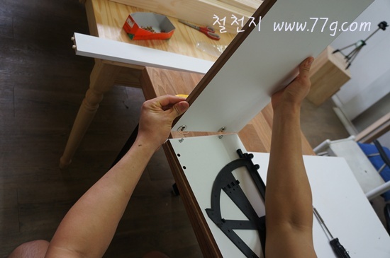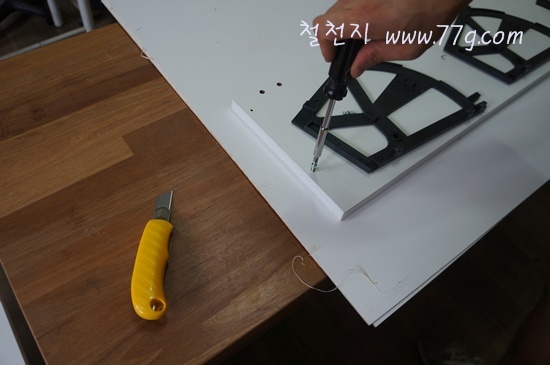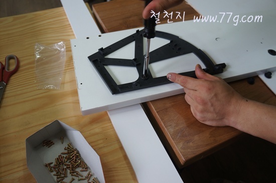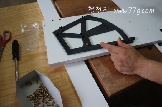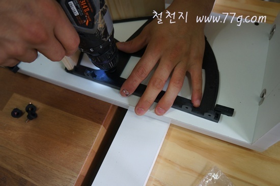 이때 나사못을 이용하시고요 전동 드라이버로 고정 하셔도 됩니다. 드릴이 있으시면 더편합니다.