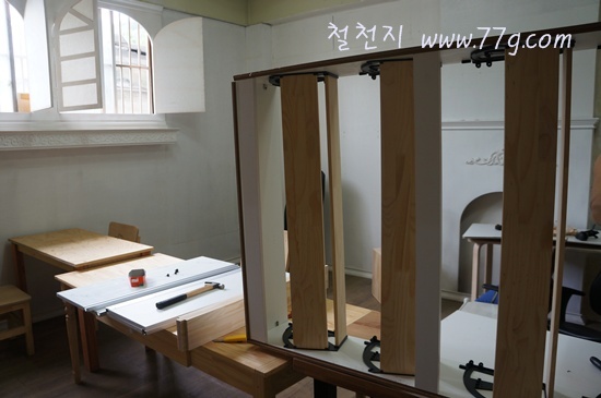 문짝이 모두 고정된후에 뒷판을 고정 하세요