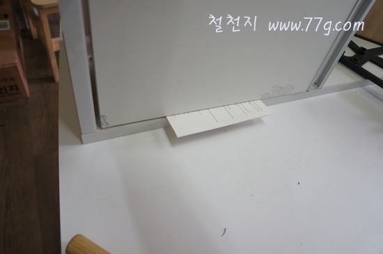 문짝이 기둥과 간섭이 되지 않도록 문짝 하부에 3mm 정도의 종이나 목재를 대고 고정 하시면 편합니다.