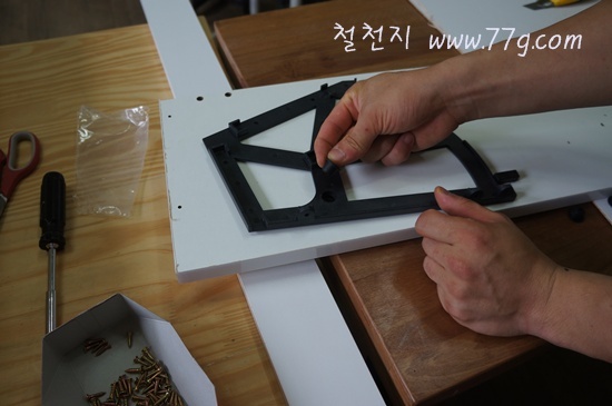 문짝을 부속에 고정 해주세요.