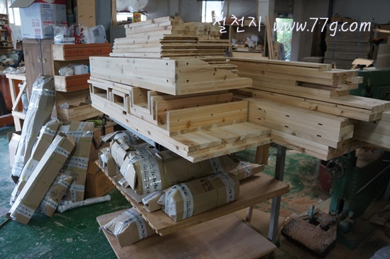 아침부터 엄청난 양의 목재를 사진을 찍기 가져 왔습니다.