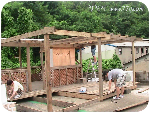 못을 이용한 옥상 테라스 방부목 시공 모습입니다. (동영상)2010-09-01
