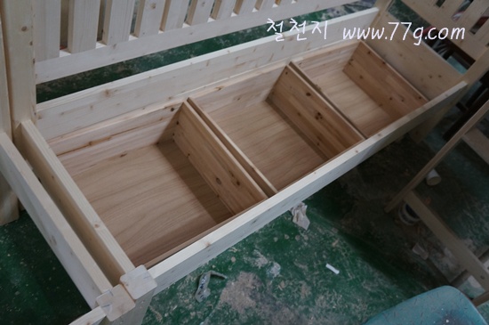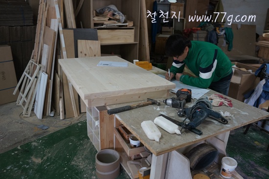 수납이 가능하도록 저상바퀴를 설치한 서랍을 만들고 있습니다.