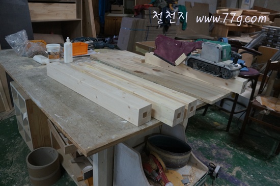 한쪽벽을 막을 원목 소파를 제작 중입니다.