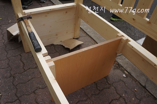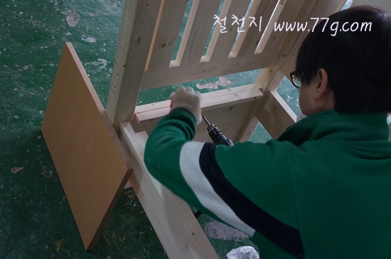 선반 높이를 조절 할수 있게 곳곳에 다보구멍을 뚫었습니다.
