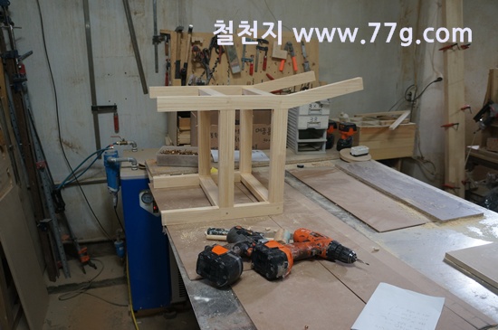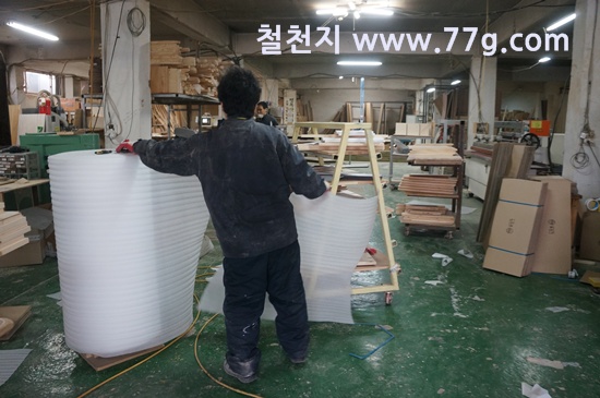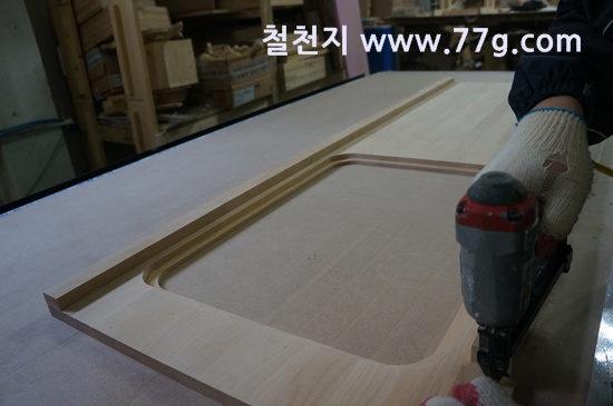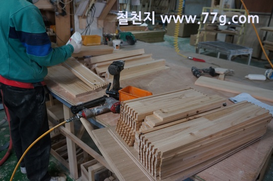 원목 수납침대를 제작하고 있습니다.