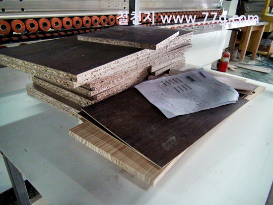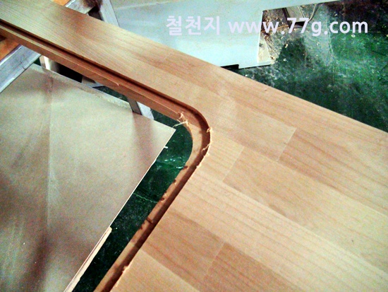 코팅합판의 모서리를 매끄럽게 작업하고 있습니다.