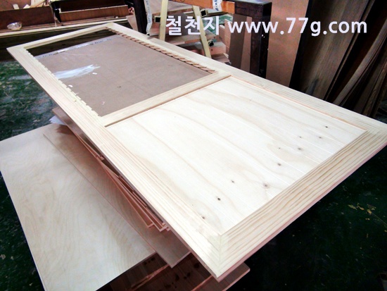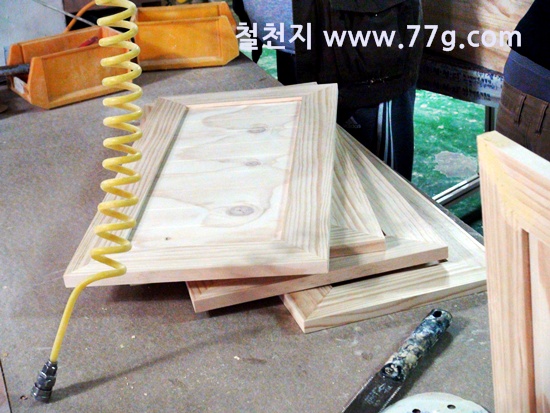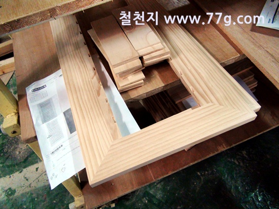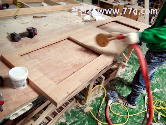 원목 문짝들이 만들어 지고 있습니다.