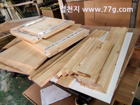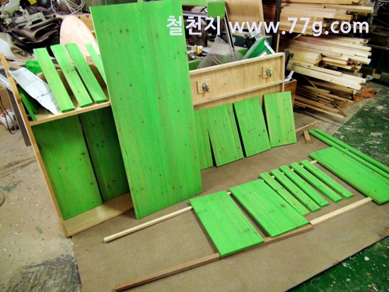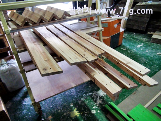 바니쉬 작업을 하고 건조중인 목재들...
