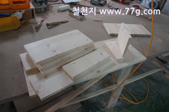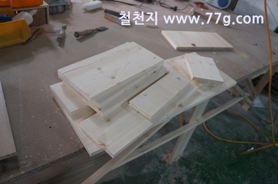 간단하게 재단 할수 있는것들은 작업을 했습니다. 홍송판재 입니다.
