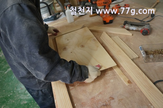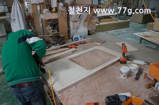 싱크대 코너장을 제작 중이고요.