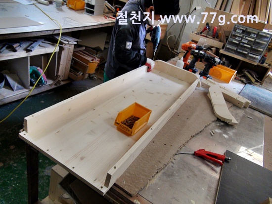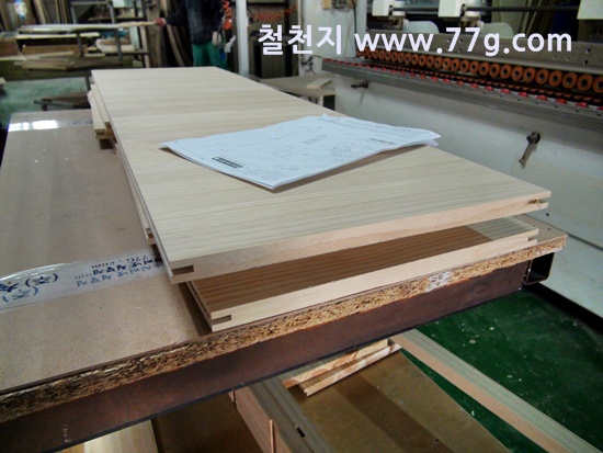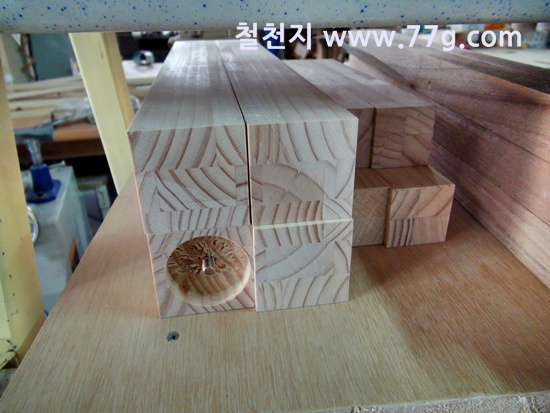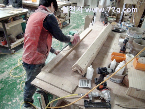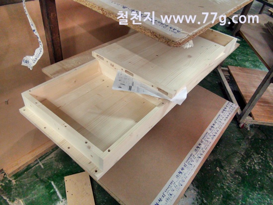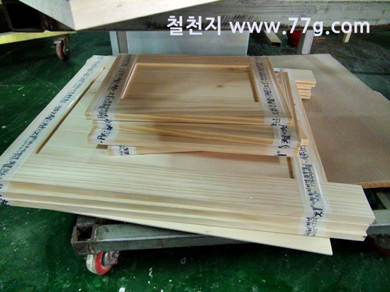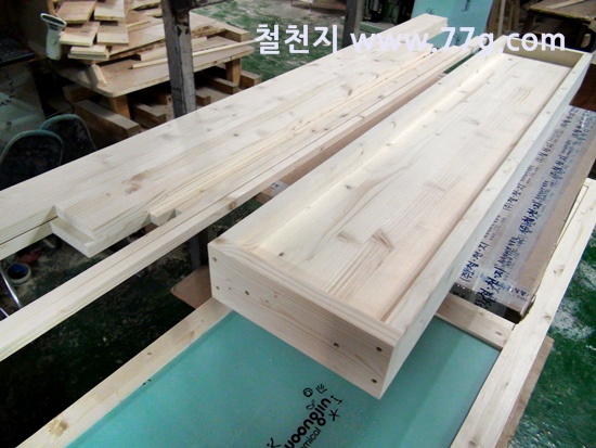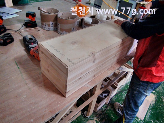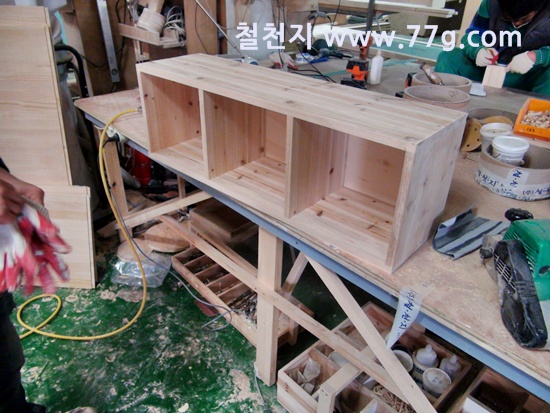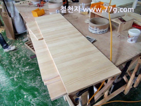 한쪽에서는 삼나무 집성목으로 만든 수납장을 만들고 있습니다.