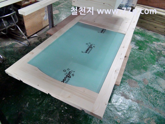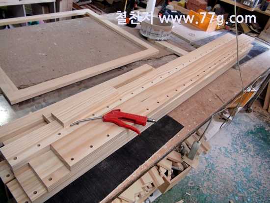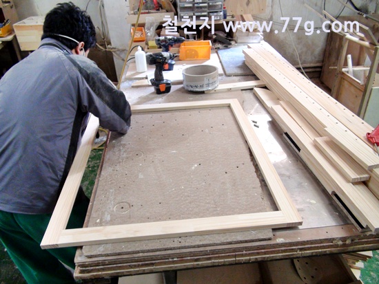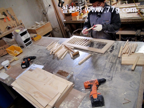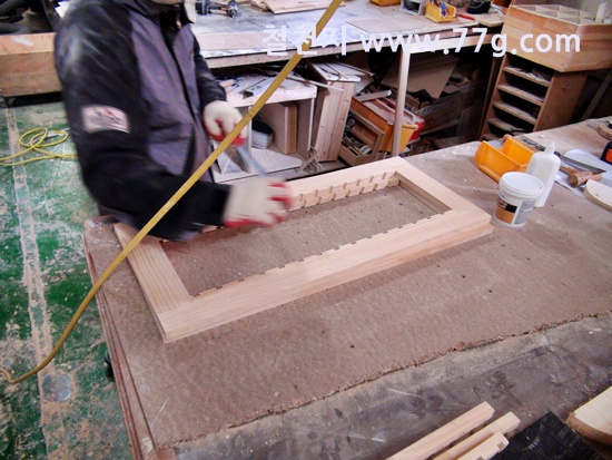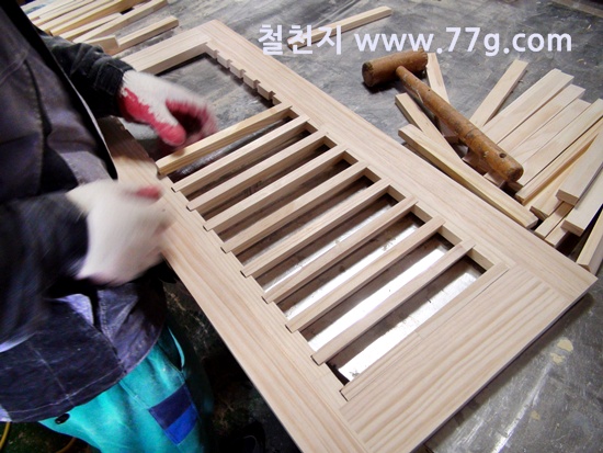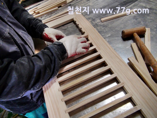 문짝틀을 제작하고 갈비살 작업을 하는 모습...