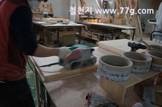 원목상판 덮개를 가공중입니다.