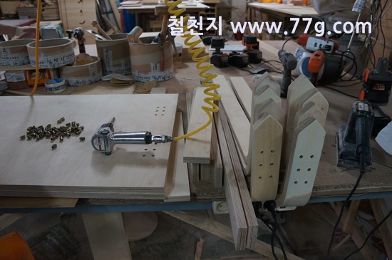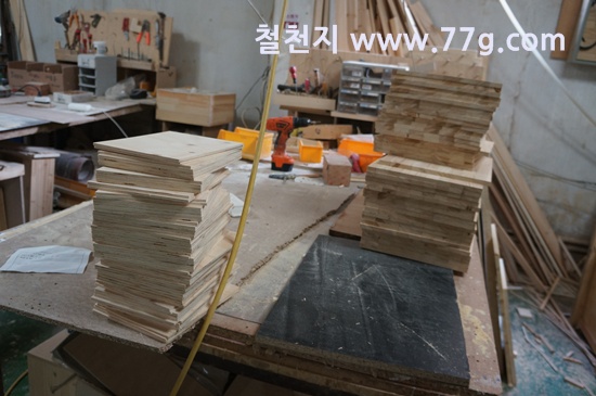 자작합판 으로 볼트로 조립 하도록 되어 있습니다.