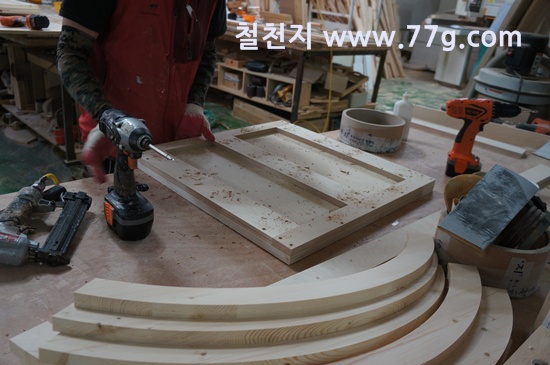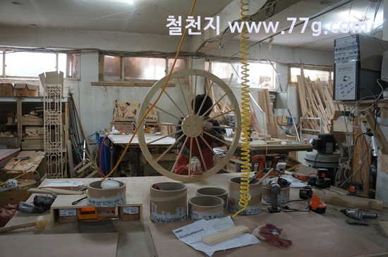 마차바퀴를 제작중에 있습니다. 손이 참많이 갑니다.