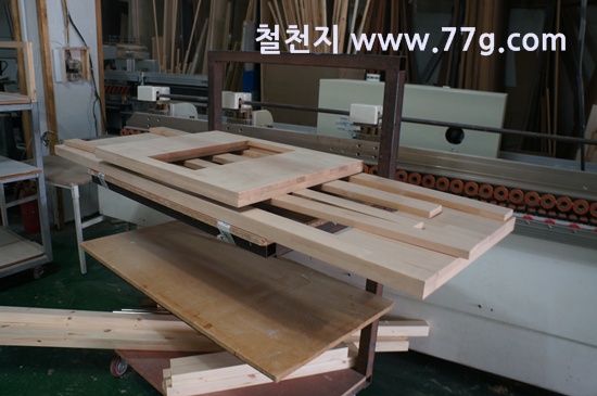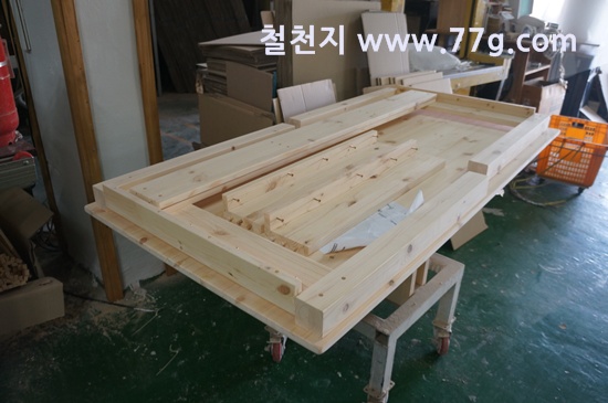 일대일로 제작중인 문짝 입니다. 사이에 x 각재를 홈파서 끼워 제작 했습니다.