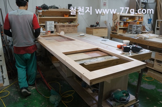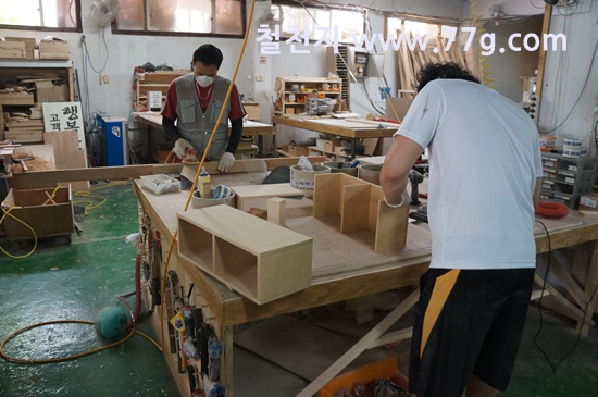 교구장과 싱크대 제작하는 사진 입니다.