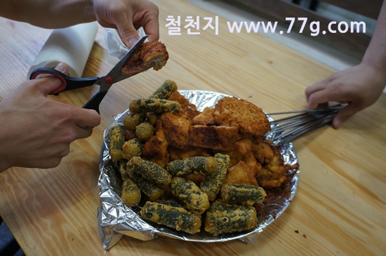 오늘의 철천지 사람들 간식은 돈까스 입니다.
