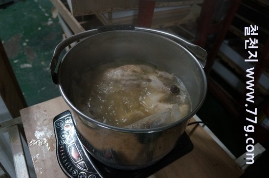 아침부터 닭백숙을 끓였습니다.