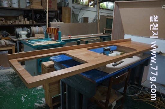 어제부터 도색을 하고 있는 앨더 싱크대 상판 입니다.
