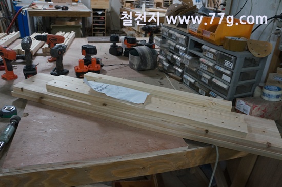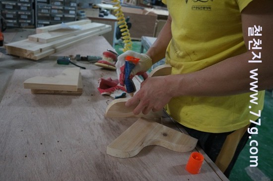 원목테이블 다리 가공중 입니다. 철천지에서는 볼트로 고정하는