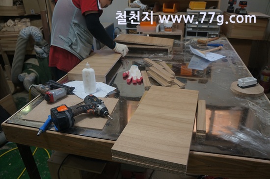 코팅합판과 스프러스 재단 사진 입니다.