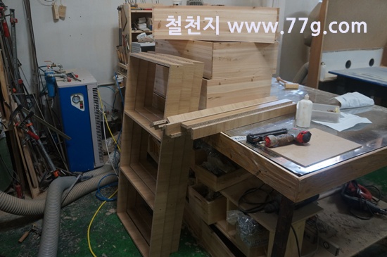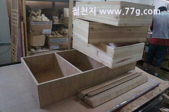 서랍이 들어가는 부분은 문짝과 경첩의 간섭을 피하기 위해