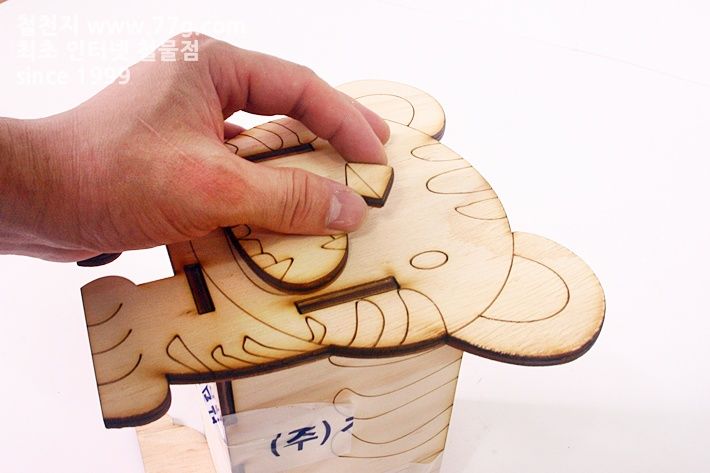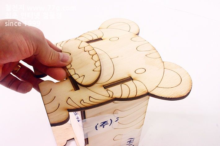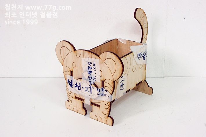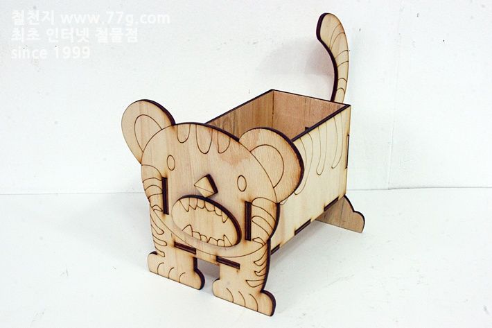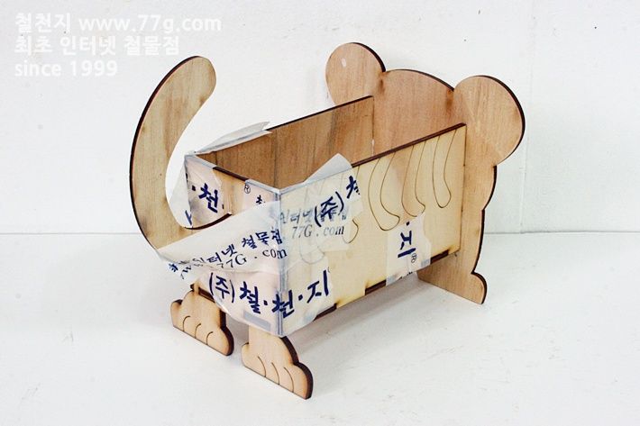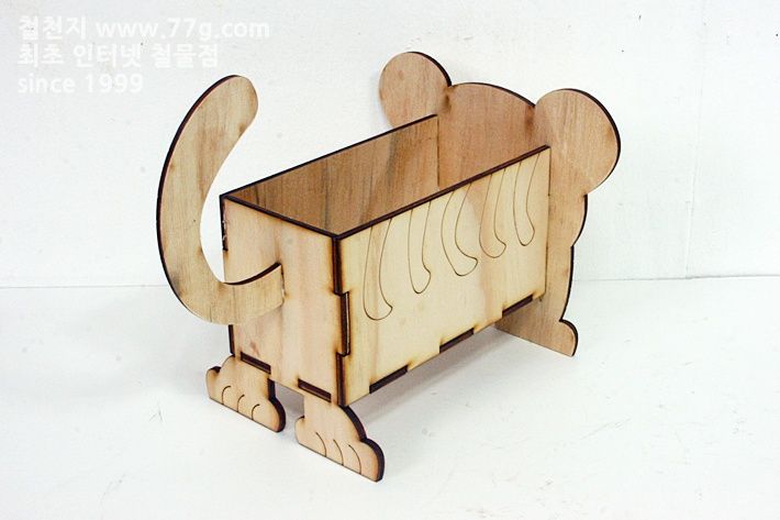 재료: 박스 판 4장(190mmx100mmx4.8mm2장, 96mmx100mmx4.8mm2장) , 바닥 판 (190mmx96mmx4.8mm1장), 꼬리 판 1장.입 1장, 코 1장.
