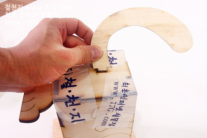 아직 본드가 굳지 않은 상태이니 테이프로 단단히 고정해 주세요,