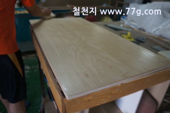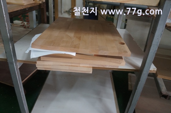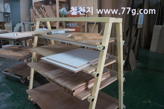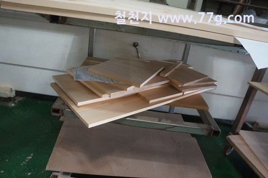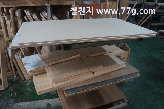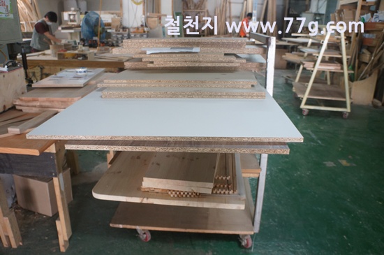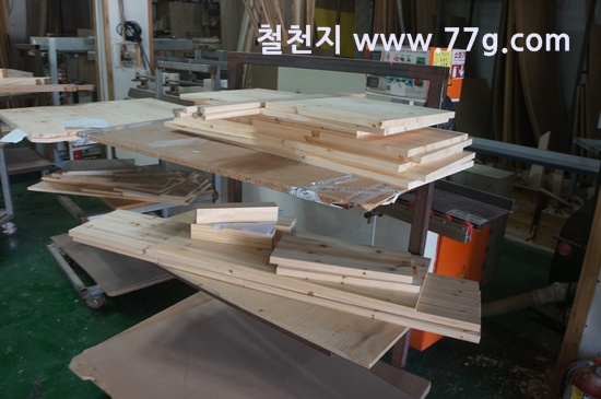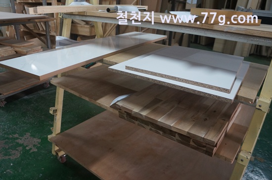 제작소의 모습 입니다. 코팅합판 재단 사진 입니다.