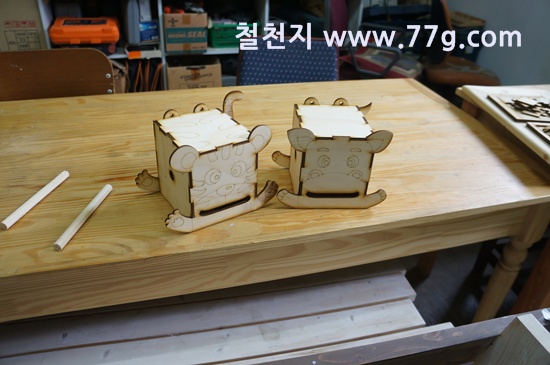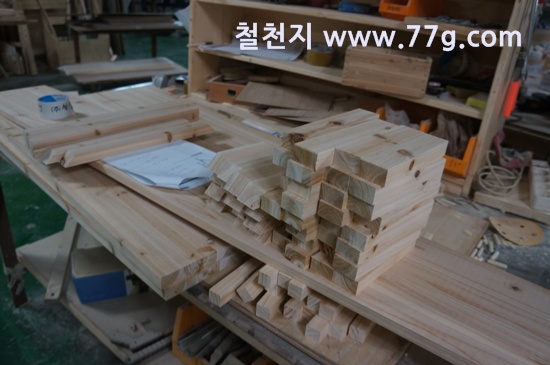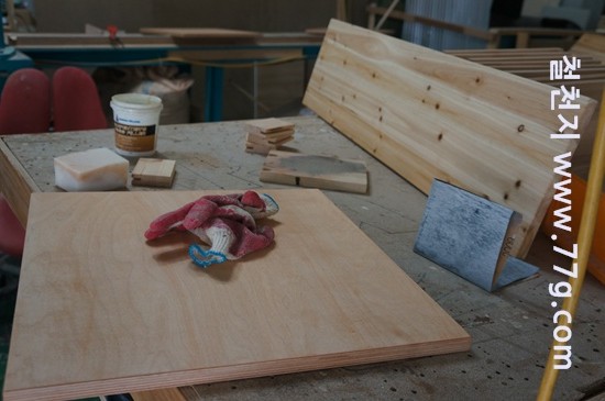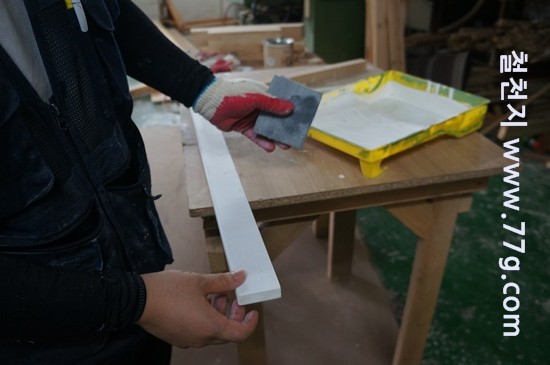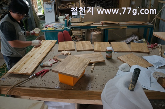 스테인을 바르고 건조를 하는 중입니다.