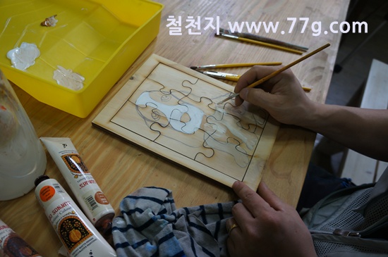 퍼즐판을 만들어서 그림을 그리는 모습입니다.