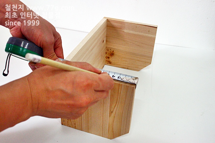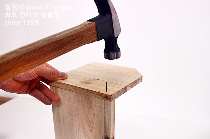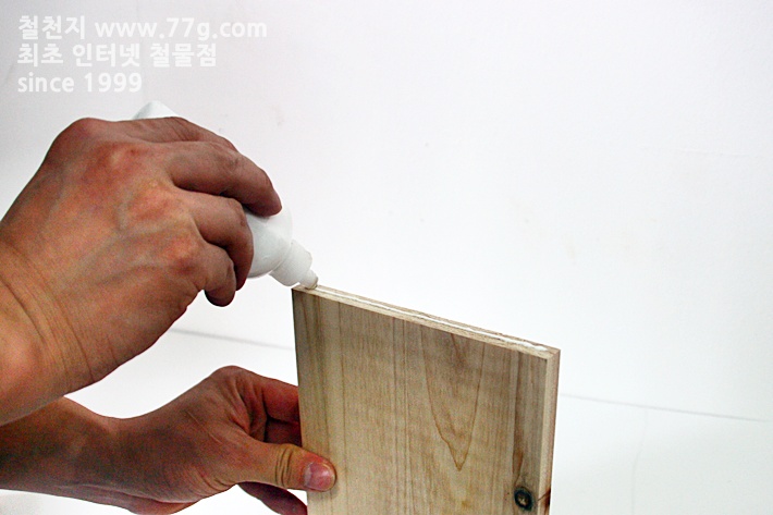 본드를 바르고 면을 맞춘 후 못으로 고정 하세요,, 망치질이 서툴면 미리 측 판에 못을 살짝 고정시킨 후