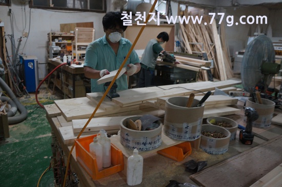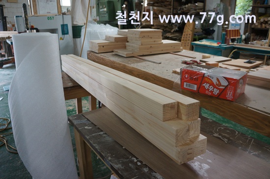 침대를 가공하려고 준비하고 있습니다.