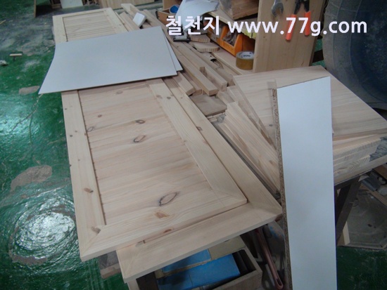 싱크대 문짝 조립 모습입니다.