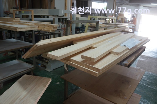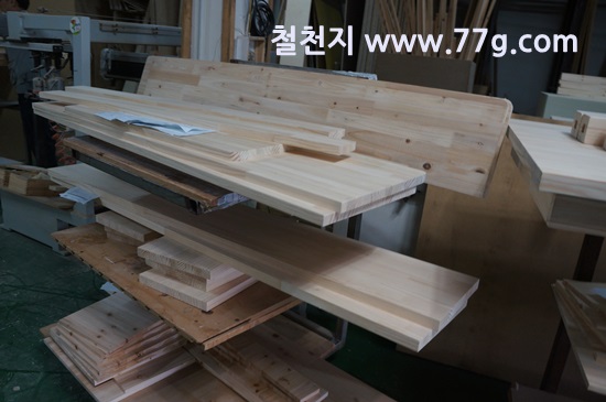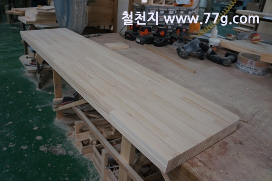 책상 상판으로 사용될 목재에 모서리를 둥글게 가공 했습니다.