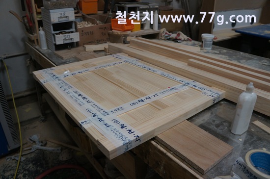 스윙도어를 집성하고 있는사진 입니다.