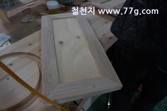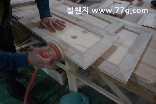 물푸레 싱크대 문짝 제작중 이고요.