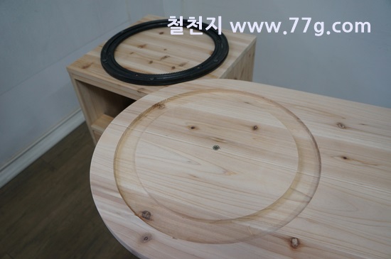 미첼 회전 책장 사진 입니다. 회전 레일을 숨기기 위해 홈을 가공 했습니다.
